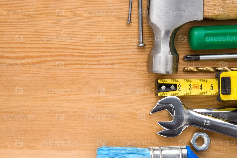 Набор инструментов на деревянном фоне
