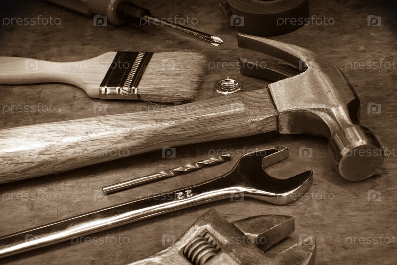 Инструменты и инструменты на деревянной доске