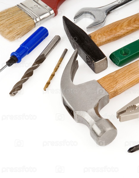 Набор инструментов и приборов, изолированных на белом