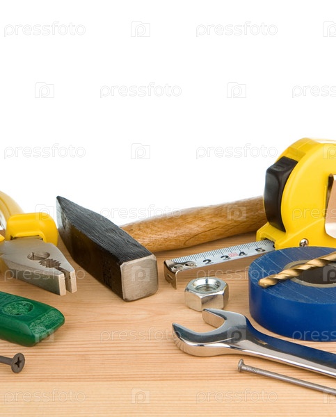 Инструменты и инструменты, изолированные на белом