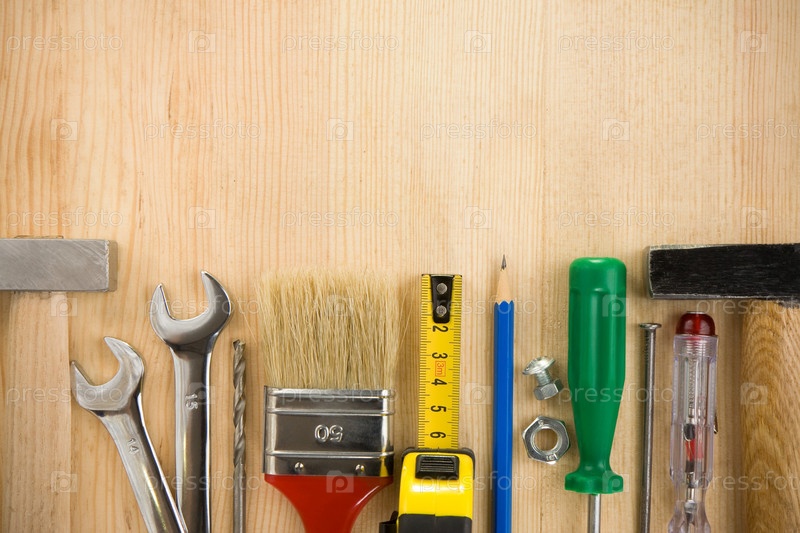 Инструменты на деревянном фоновом доске