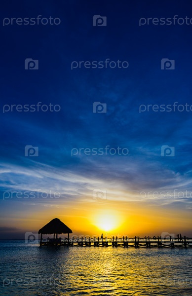Солнце море тропический закат вид на пирс Карибского моря