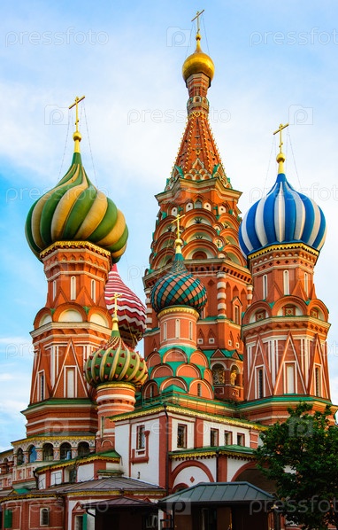 Московский храм красной площади на фоне голубого неба