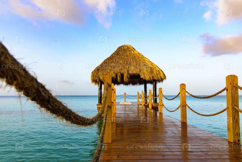 Горячий тропический день Карибский морской пирс с перголой