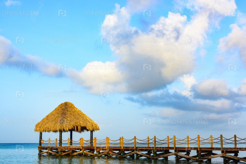 Горячий тропический день Карибский морской пирс с перголой