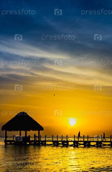 Солнце море тропический закат вид на пирс Карибского моря
