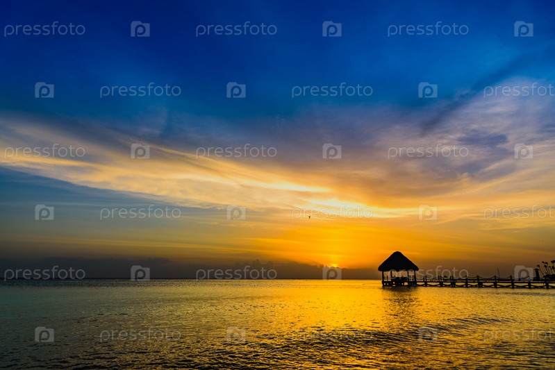 Солнце море тропический закат вид на пирс Карибского моря