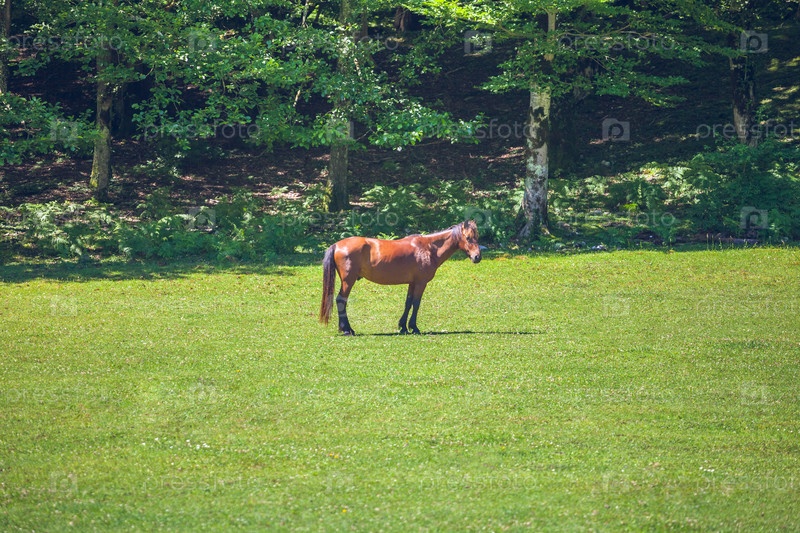Молодая лошадь пасется на лугу