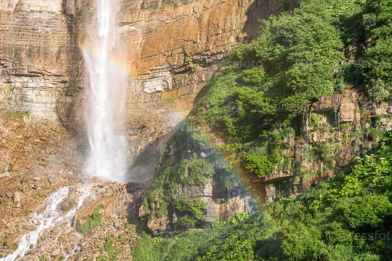 Радуга на водопаде Кинчха недалеко от каньона Окаце, Имерети, Грузия