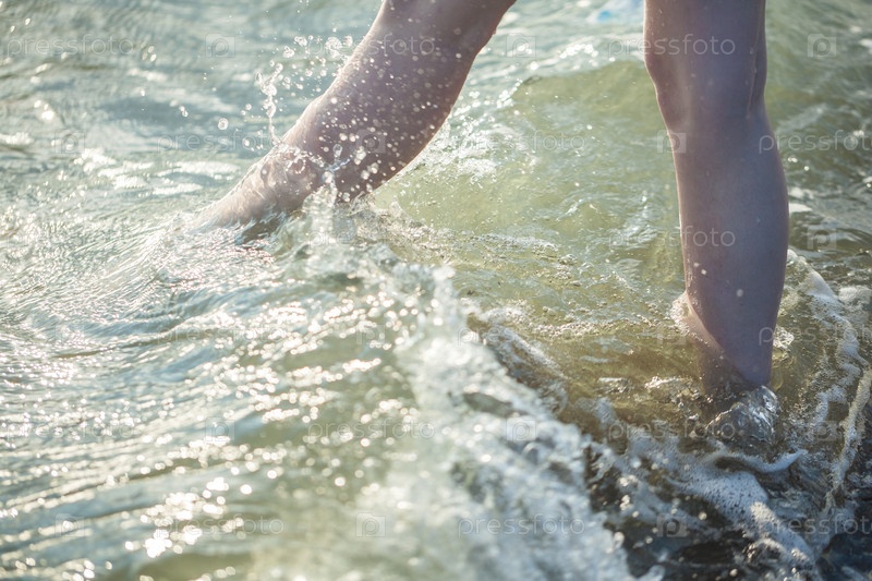 Ближайший снимок босиком женщины, идущей по пляжу.Концепция путешествия, отдыха