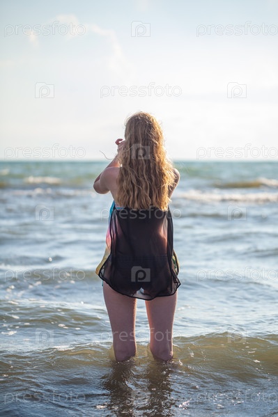 Красивая блондинка в рубашке в море
