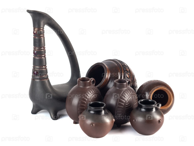 Традиционная грузинская керамическая посуда (чинчила) для вина на белом фоне