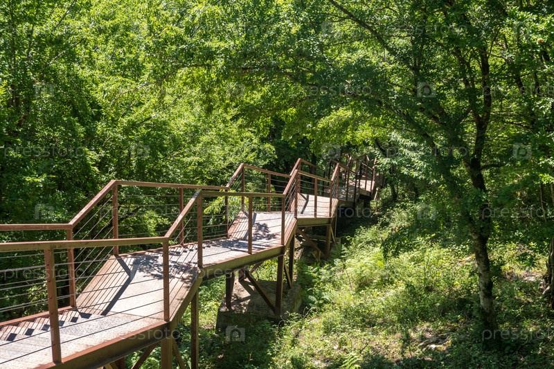 Узкий висячий мост или подвесная дорога на территории Окатсе-Каньон, Джорджия