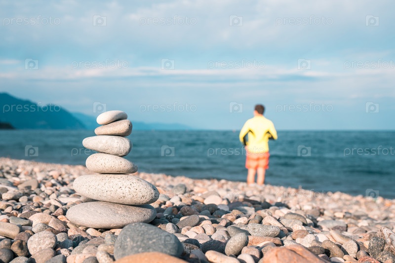 Куча камней на морском пляже, пляж Квариати, Аджария, Грузия