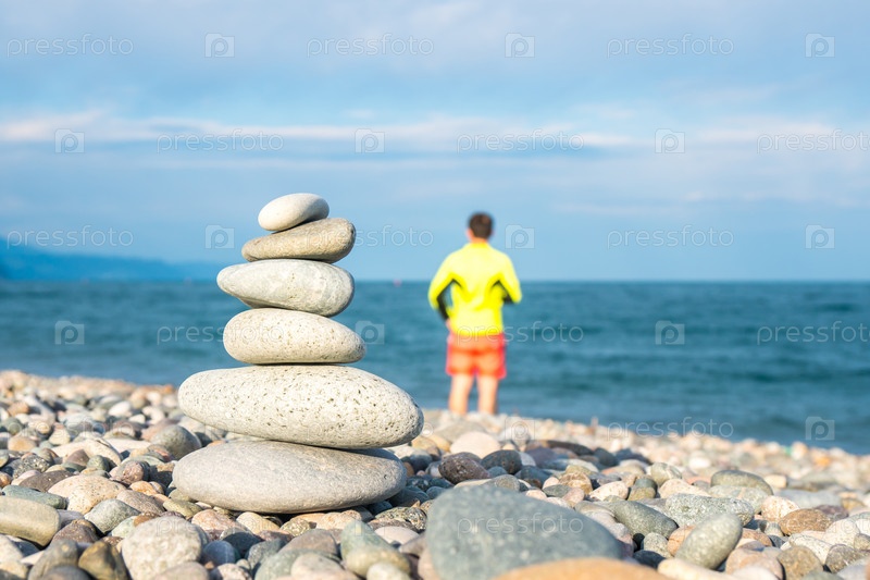 Куча камней на морском пляже, пляж Квариати, Аджария, Грузия