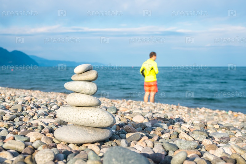 Куча камней на морском пляже, пляж Квариати, Аджария, Грузия