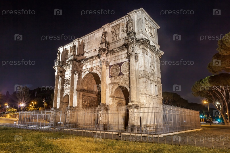 Древняя арка Константина в Риме ночью, Италия