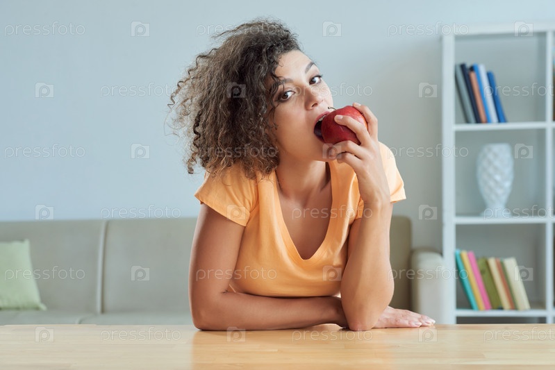 Наслаждаюсь сочным красным яблоком