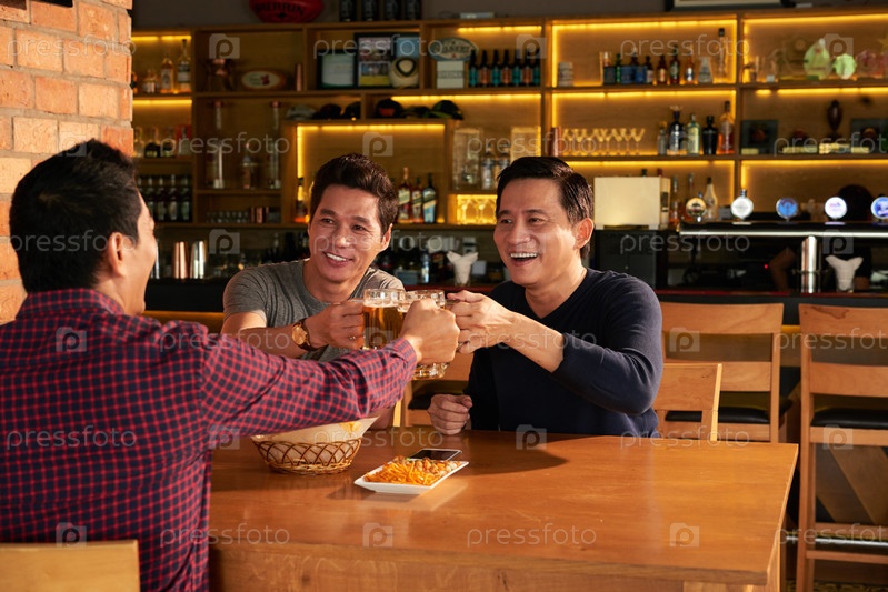 Друзья пьют пиво в пабе