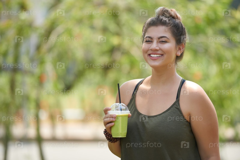 Женщина наслаждается вкусным смузи