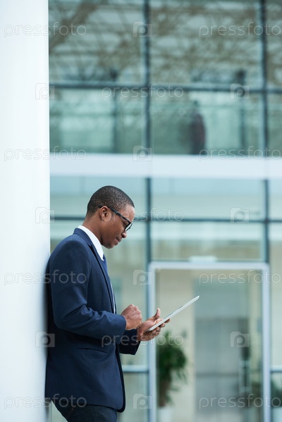 Бизнесмен проверяет электронную почту на цифровом планшете