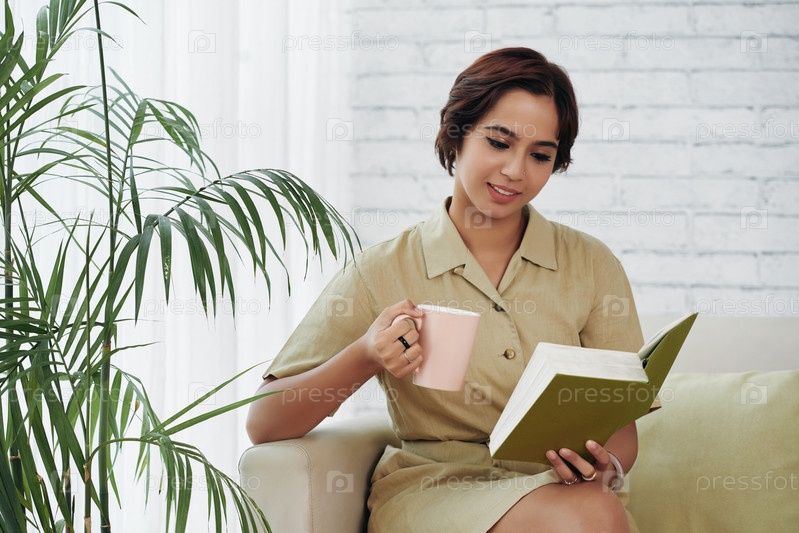 Молодая женщина наслаждается книгой