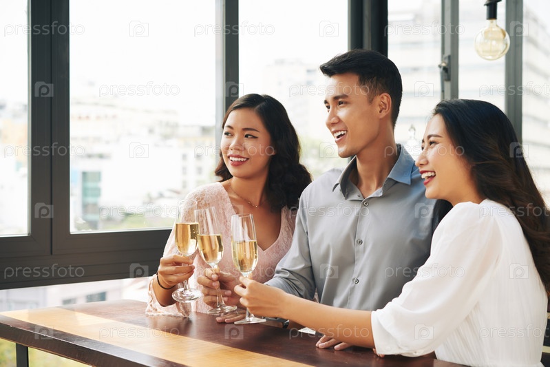 Счастливые молодые люди, устраивающие вечеринку в баре