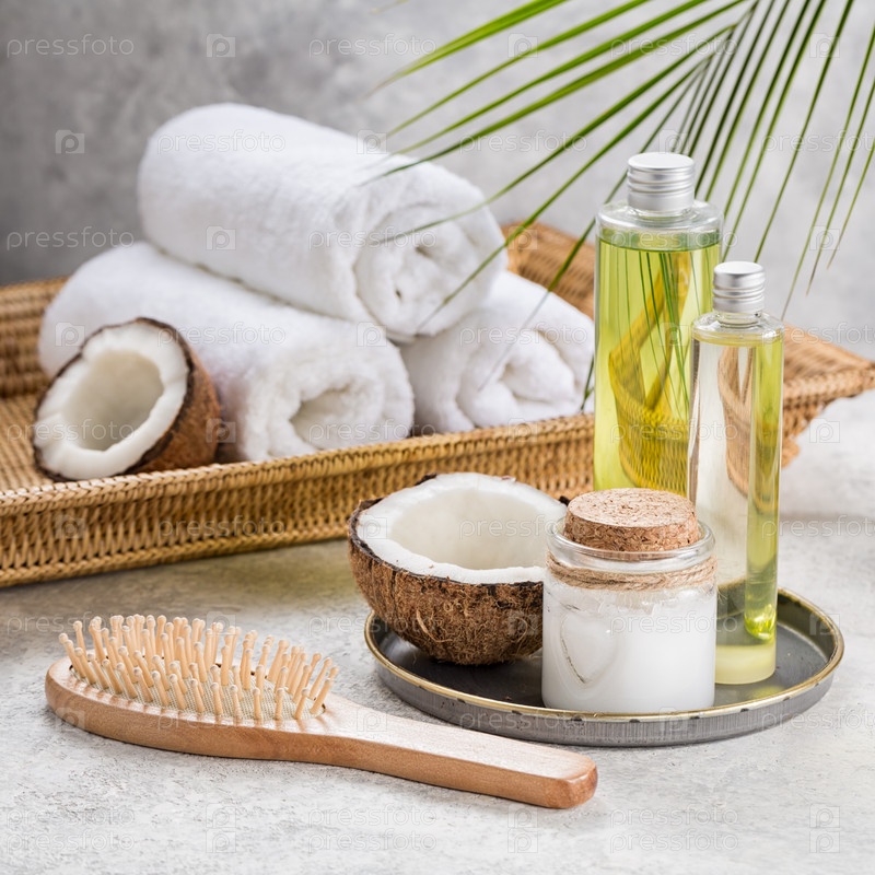 Шампунь с кокосовым маслом и щетка для волос.Уход за волосами
