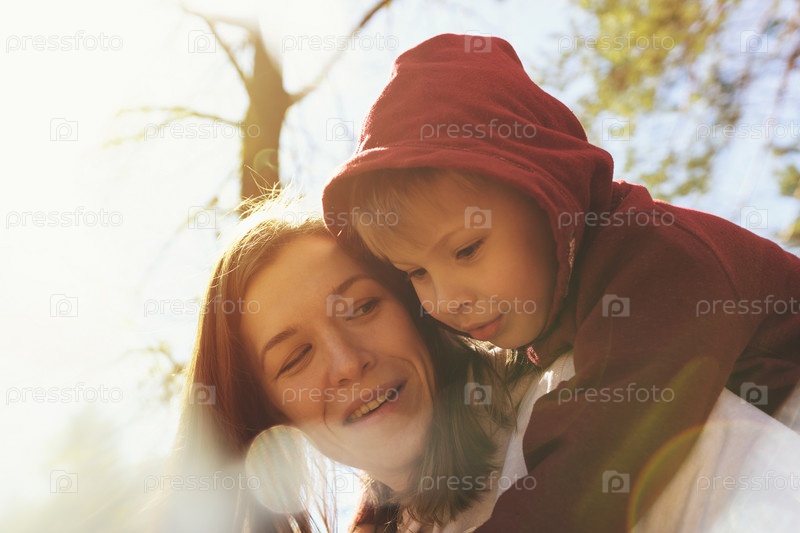 Маленький ребенок и мать играют вместе в парке