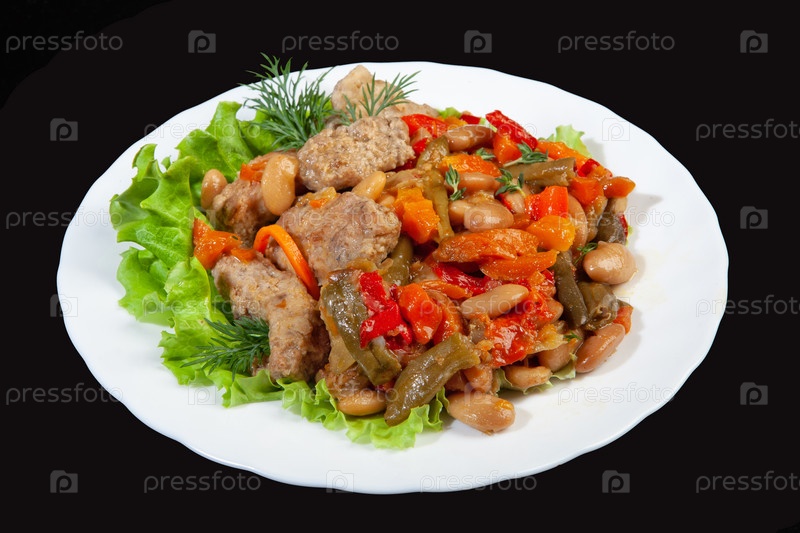 Жареное мясо с зеленью и картофелем