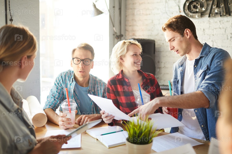 Коллеги, работающие на встрече