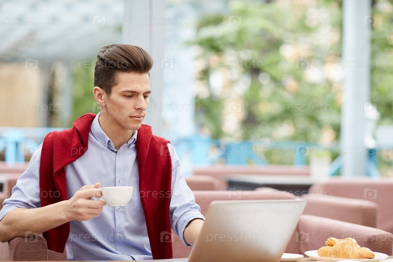 Мужчина создает сеть в кафе