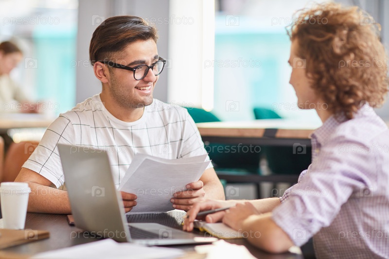Мужчины обсуждают документы