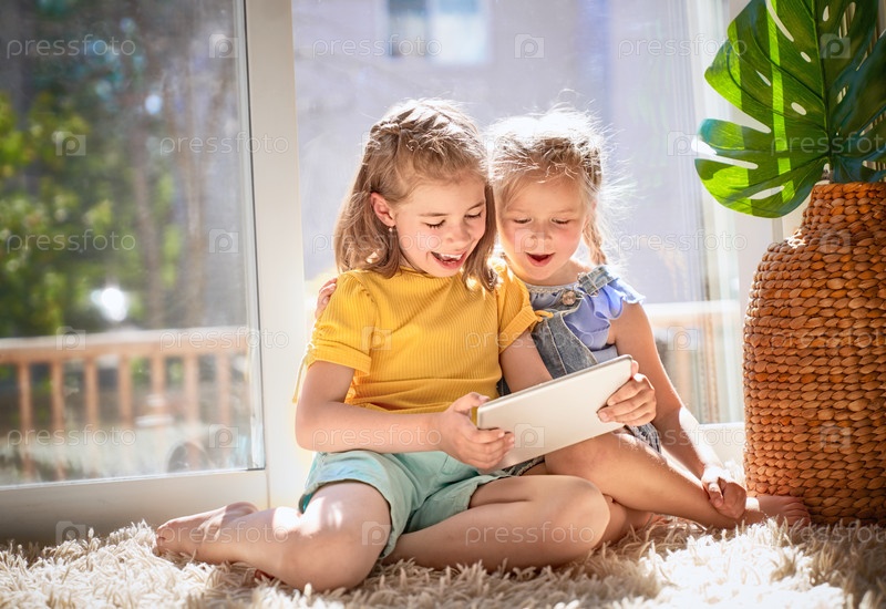 Дети играют с планшетом