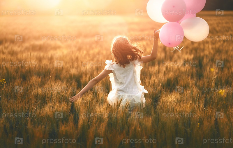 Девушка, бегущая по зерновому поле