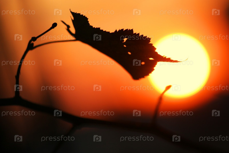 Сухой лист на фоне заката