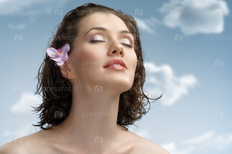 Молодая красивая девушка на фоне неба