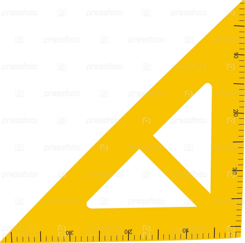Желтая угольная линейка на белом фоне