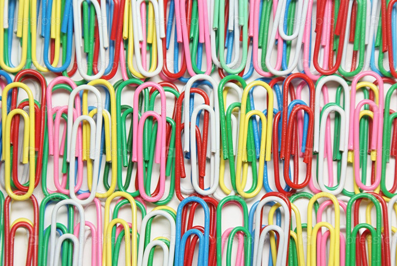 Множество разноцветных канцелярских скрепок