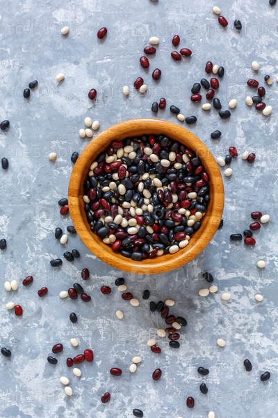 Красочные бобы в деревянной миске