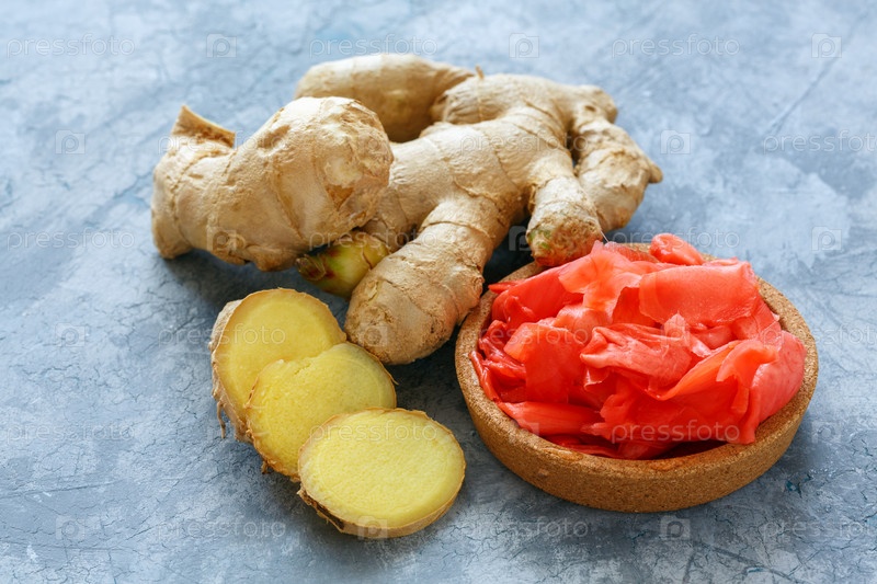 Свежий имбирный корень и сливки маринованного имбиря