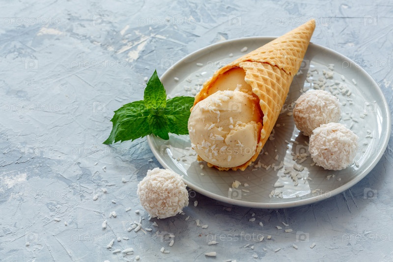 Шарик кокосового мороженого в вафле