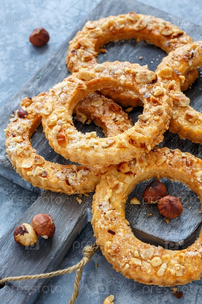 Домашние кольца из короткого хлеба, посыпанные орехами
