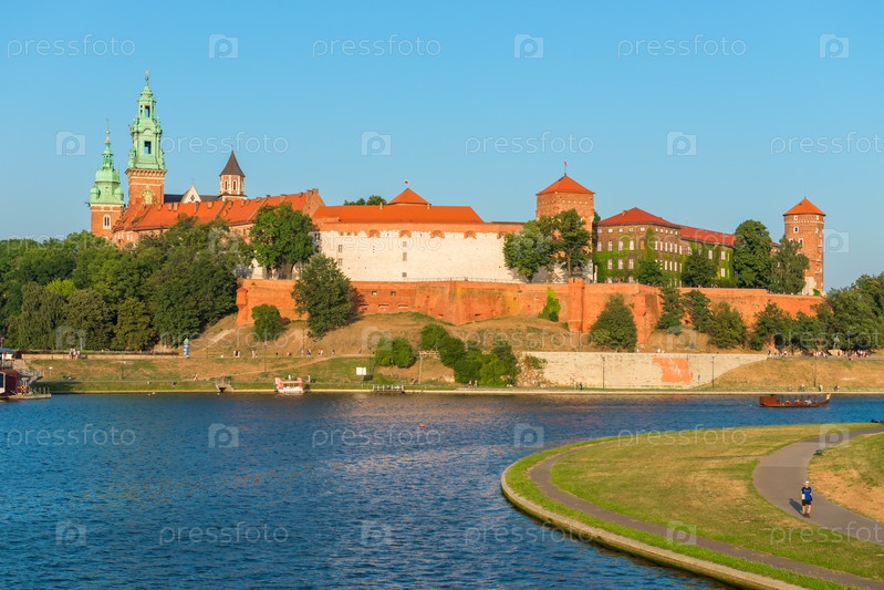 Краков, Польша - 11 августа 2017 года: вид на закат в Вавельском замке на холме