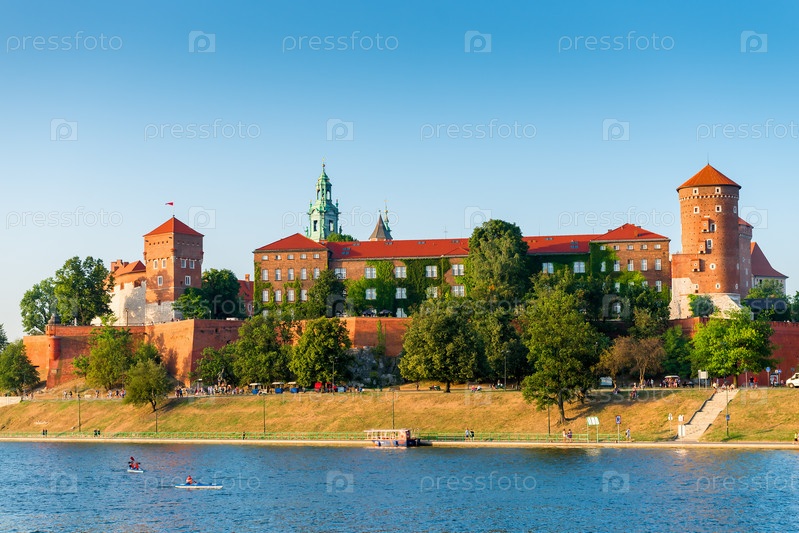 Краков, Польша - 11 августа 2017 года: вид на достопримечательность на берегу Вавельского замка в Кракове