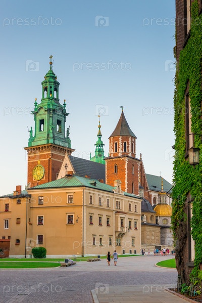 Краков, Польша - 11 августа 2017 года: Краков, здание Вавельского замка на фоне синего неба