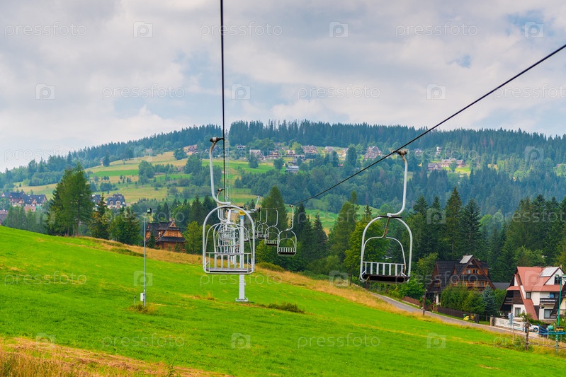 Сидельный подъемник в горах в Закопане, Польша летом