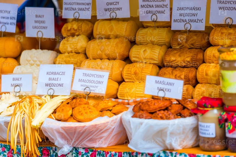 Ассортимент традиционных сыров на рынке в Закопане, Польша