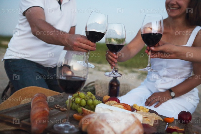 Люди пьют красное вино на улице