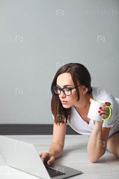 Молодая женщина с компьютером в помещении